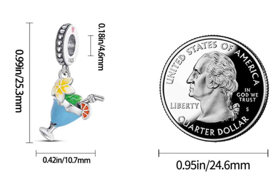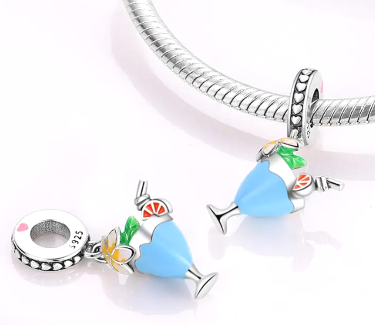 Visací přívěsek s letním koktejlem, dekorovaný hladkým barevným smaltem a třpytivým modrým zirkonovým drahokamem na prstenu přívěsku. Vyprávěj svůj příběh s každým přívěskem a vytvoř náramek, který odráží, kdo jsi. Tvůj styl. Tvůj náramek. Tvůj příběh.