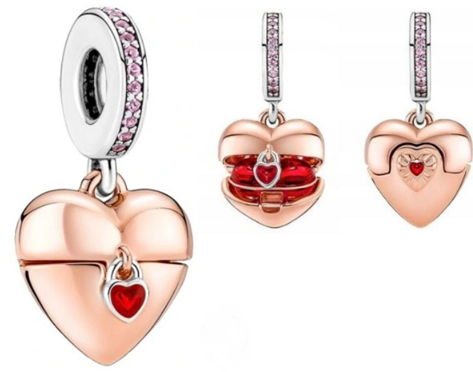 Charm Milostné srdce otevírací pozlacené růžovým zlatem, přívěsek na náramek láska