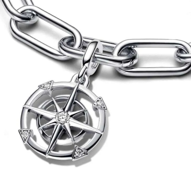 Jděte svou cestou s medailonem Kompas. Tento ručně vyrobený přívěsek má osm světových stran se zářivými kulatými Zirkony uprostřed. Spojka je navržena pro kombinaci s konektory, které se otevírají a zavírají. Noste tento medailon jako připomínku, že máte moc vybrat si svou budoucnost.