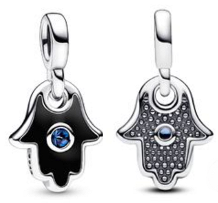 Přívěsek Ruka Fatimy s černými smaltovanými detaily. Tento smysluplný kus visí dolů, inspirovaný symboly ochrany. Sada s umělým křišťálem s rámečkem, noste jako připomínku, že přivítáte dobro, laskavost a milost ve svém životě. Upravte jej na náramky, náhrdelníky, prsteny a kruhové náušnice.