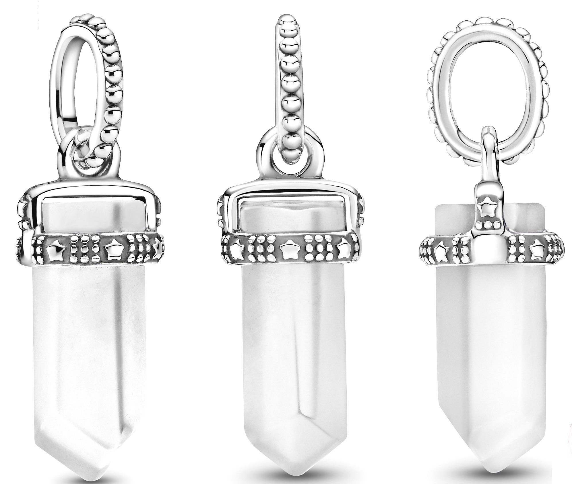 Využij svou vnitřní magii s přívěskem Amulet. Tento design se vyznačuje krystalovým matným bílým kamenem se špičatým okrajem. Kámen je obehnán pásem zdobeným hvězdami a mikroperličkami na kauci pro větší detaily. Noste tento přívěsek s náramkem nesoucím přívěsky, která představují pozitivní vibrace a štěstí jako oslavu vaší jedinečné síly.