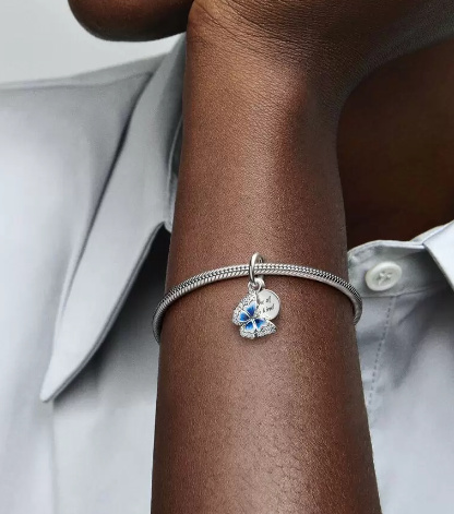 Udělejte si letos na jaře chvilku na spojení s přírodou a užívejte si krásu tohoto ročního období s naším dvojitým visacím přívěskem Modrý motýl a citát. Přívěsek s ručně malovanými křídly a čirými kubickými zirkoniemi s briliantovým výbrusem je navíc opatřený medailonem s vyrytým textem „One of a kind“ jediný svého druhu . Stejně jako motýli v přírodě jsou i naše přívěsky vždy zcela jedinečné. Noste ho a zapůsobte letos na jaře ve sladěném stylu.