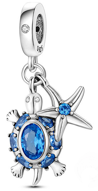 Visací přívěsek s roztomilou Želvou a Hvězdicí, navržený s třpytivými modrými a bílými drahokamy Zirkonu. želvy symbolizují klid, moudrost a dlouhověkost. Hvězdice představují božskou lásku, vedení a inspiraci. Mořská hvězdice jako symbol vitality, prosperity a štěstí. Želva ztělesňuje ochranu a jistotu, má podporující a ochrannou energii. Je symbolem dlouhověkosti, pevného zdraví, stability, síly, vytrvalosti a dokonale podpoří ty z vás, kteří podnikají. Krunýř želvy poskytuje ochranu a bezpečí na mnoha našich životních cestách.