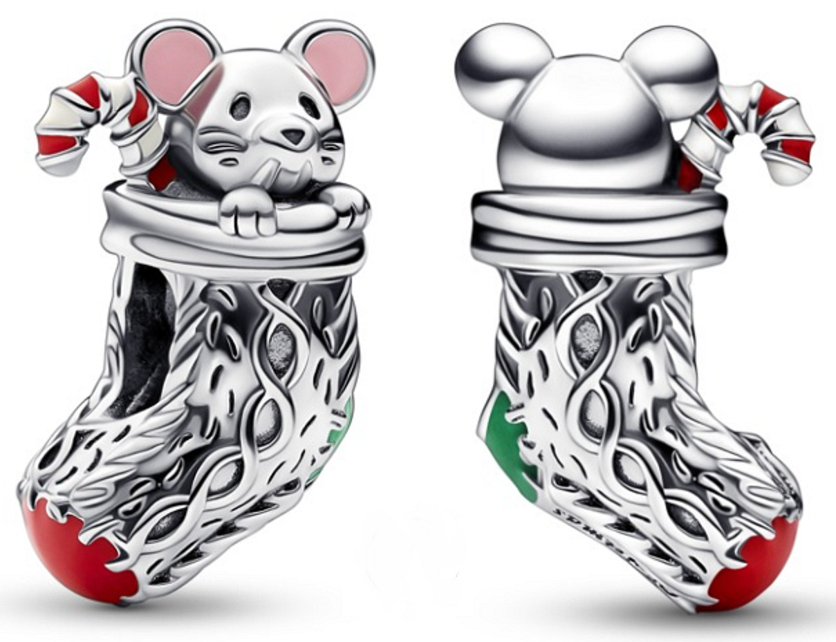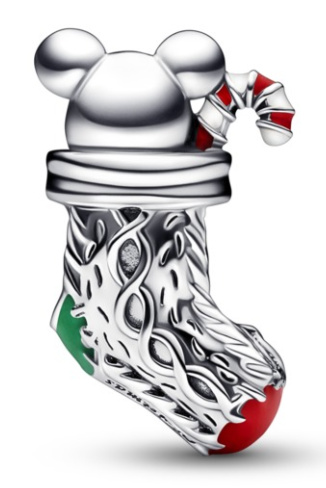 Korálek myška ve vánoční ponožce s gravírovnáním "The magic of Christmas" (Kouzlo Vánoc) s červenou a růžovou glazurou. Ručně dokončený přívěsek má tvar vánoční ponožky s realistickými pletenými detaily a roztomilou myškou a uvnitř vypadající cukrovou hůlkou. Darujte krásné chvíle radosti a štěstí. Potěšte vaše blízké milou vánoční myškou.