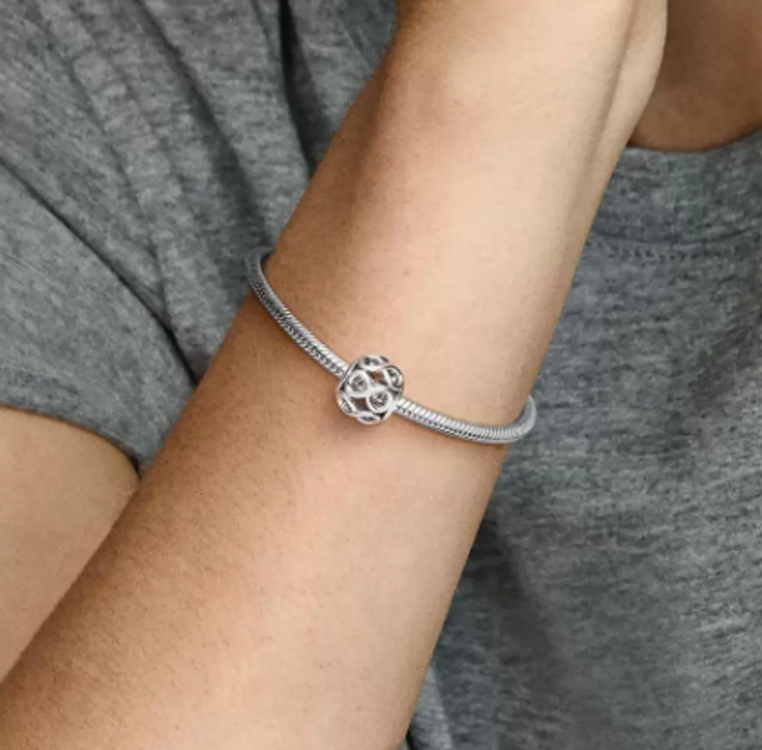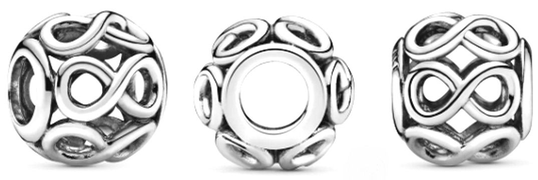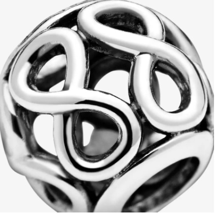 Elegantní korálek složený ze symbolů pro nekonečno, se navléká na náramky nebo řetízky. Neváhejte korálek kombinovat s ostatními dropsy a vsaďte na šperk, který vás nikdy nezradí.