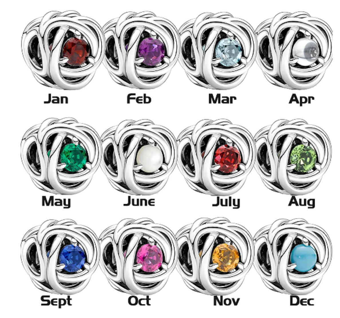 Kámen symbolizuje červnový kámen, bílou perlu. Točivý tvar šperku tvoří symbol věčnosti.