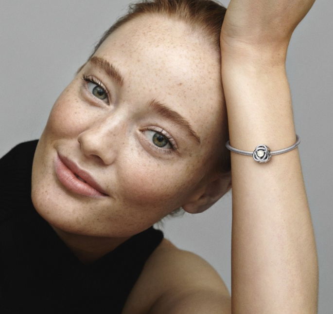 Korálek s motivem věčnosti. Dodejte svým náramkům a přívěskům šmrnc pomocí tohoto věčného kruhu. Tento speciální kousek je vyroben ve tvaru nekonečného copu a ve svém středu je osazen bílým Perleťovým krystalem. Symbolizující věčnost, přidejte toto jiskřivé kouzlo do svého stylu, aby vaše každodenní šperky získaly jasnou aktualizaci.