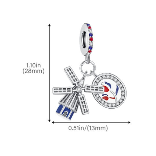 Charm Nizozemsko, Holandský mlýn, vlajka – tradice, klid severu, 2v1 přívěsek na náramek cestování