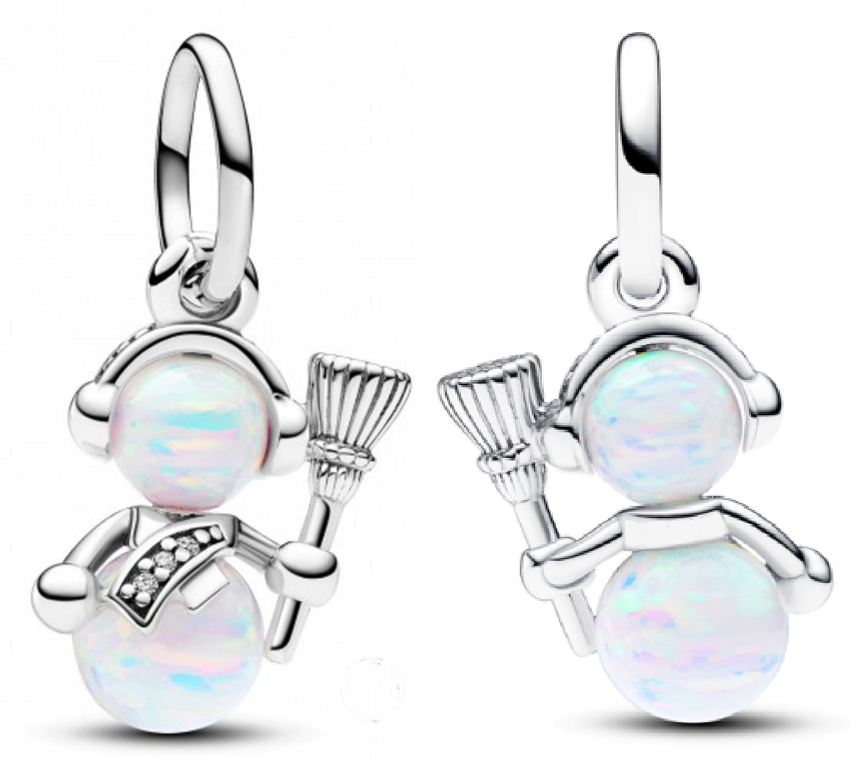 Připomeňte si s tímto přívěskem krásu zasněžených dnů strávených stavěním a zdobením sněhuláků. Tento visací přívěsek, vyrobený ze dvou třpytivých laboratorně vytvořených opálů, obsahuje hravé detaily, jako je pavé šála, rýhované koště a klapky na uši s mikro kuličkami. Darujte ho tomu, s kým byste rádi postavili sněhuláka, nebo ho noste, abyste vnesli vánoční náladu do jakéhokoli stylingu. Dodejte svým šperkům sváteční záři s visacím přívěskem Opaleskující sněhulák.
