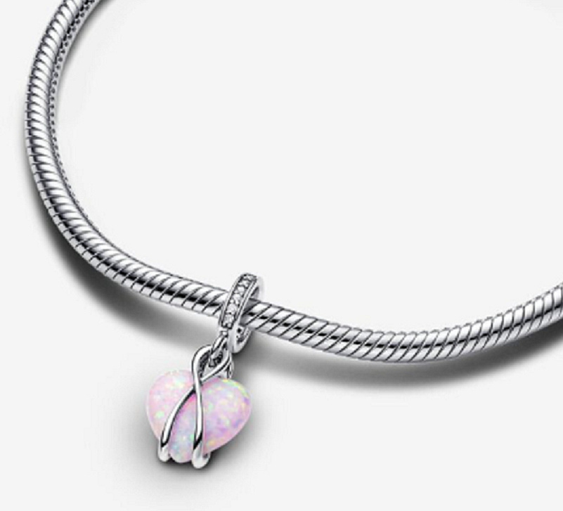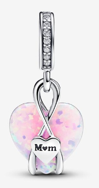 Oslavte svou maminku s opalizujícím přívěskem srdce Mum. Toto hřejivé kouzlo obsahuje růžový opál ve tvaru srdce, vytvořený v laboratoři, zdobený spektrem barev a třpytivými pruhy. Složitý design se vyznačuje překrývajícími se liniemi tvořícími kroužek, jemným kotoučem ve tvaru srdce s vyrytým „mami“ a řadou pavé pro větší lesk. Oslavte krásu mateřství s kouzlem, které zachycuje jeho bohatství a mnohostranné příběhy.