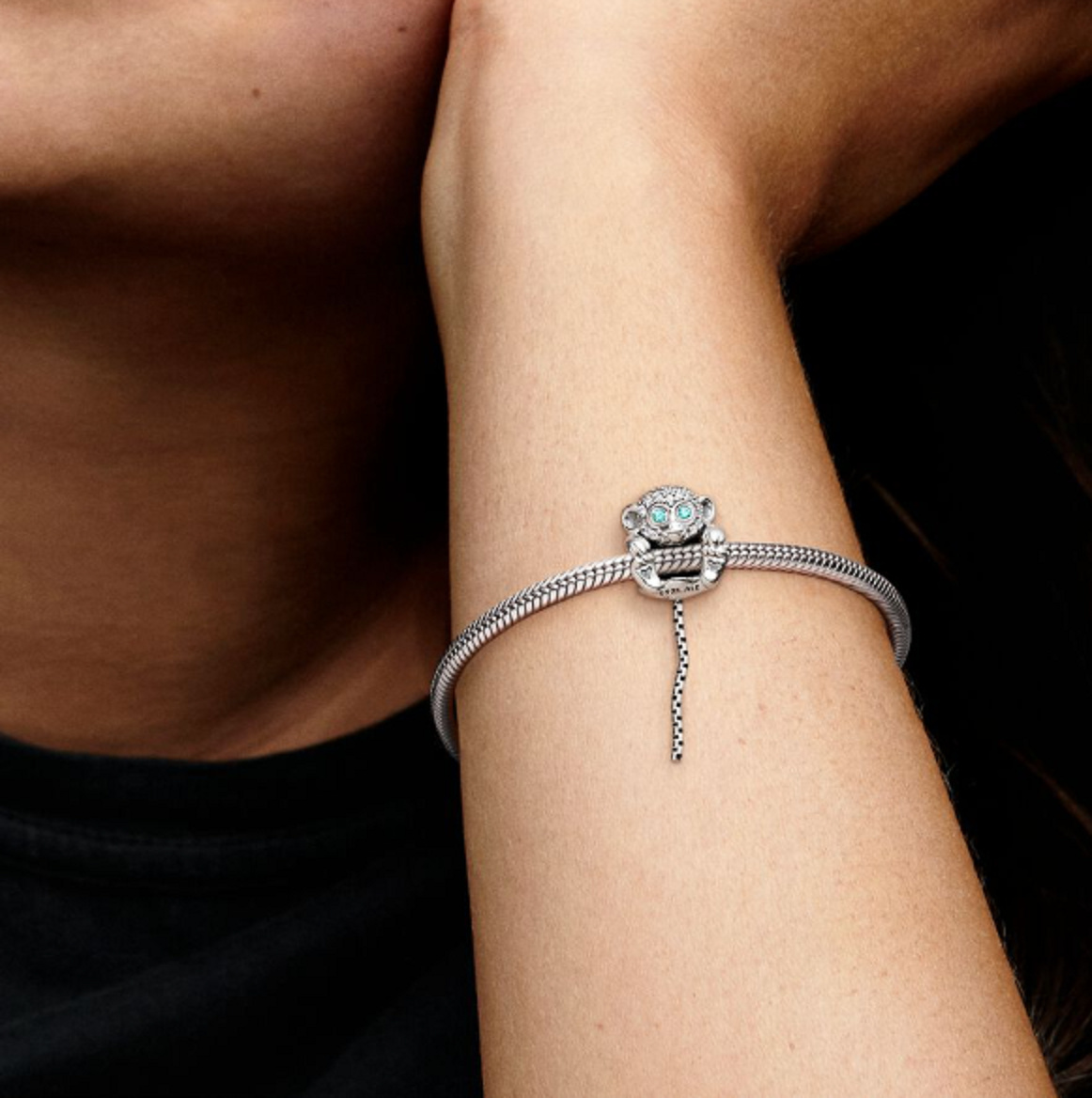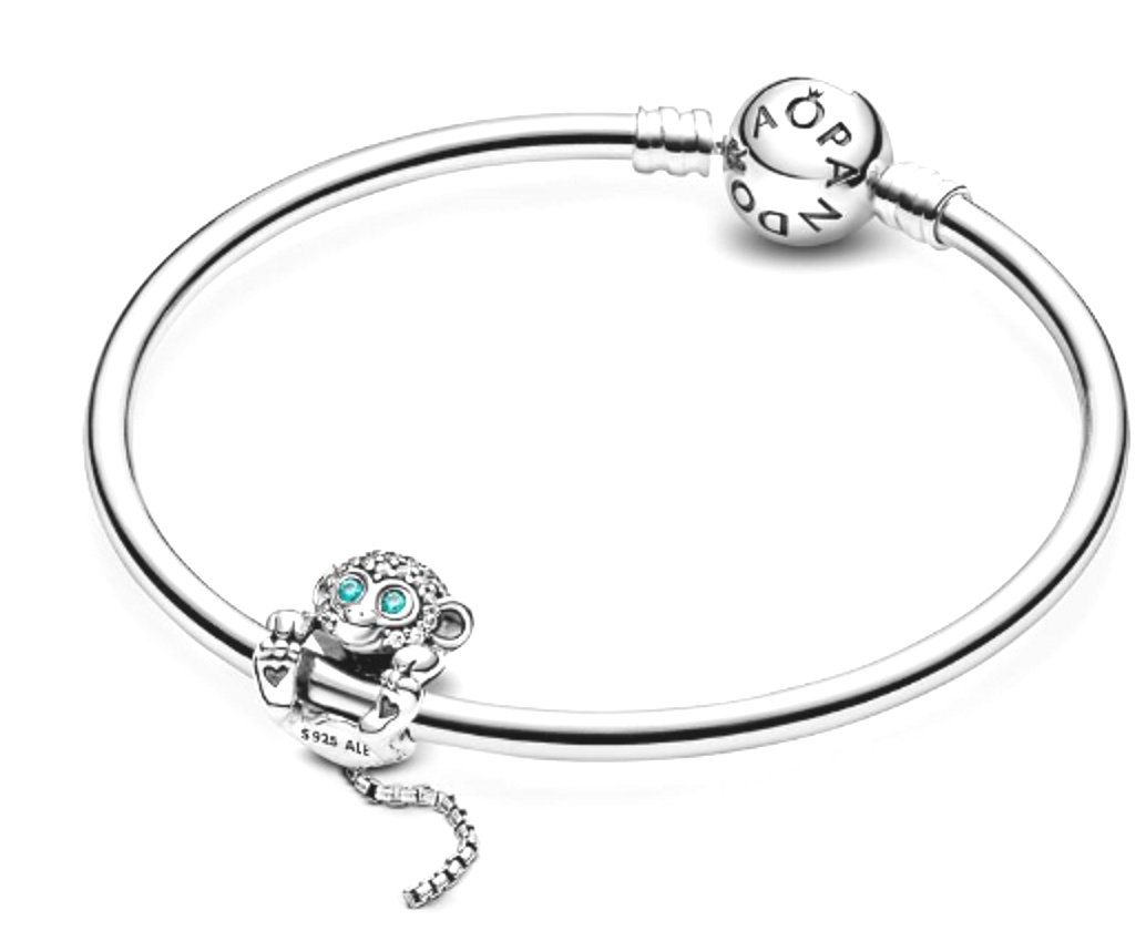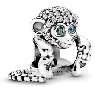 Uvolněte svou divokou stránku s tímto hravým kouzlem opice. Její modré oči a HLAVA jsou zdobeny třpytivými kameny. Opice má visící ocas a rozkošné tlapky zdobené srdíčkem, čímž ji dělá velmi roztomilou. Navléká se na šperk přes bříško, ve kterém je vidět povrch náramku nebo náhrdelníku. Noste s dalšími zvířecími kouzly, abyste vytvořili živý zvířecí styl.
