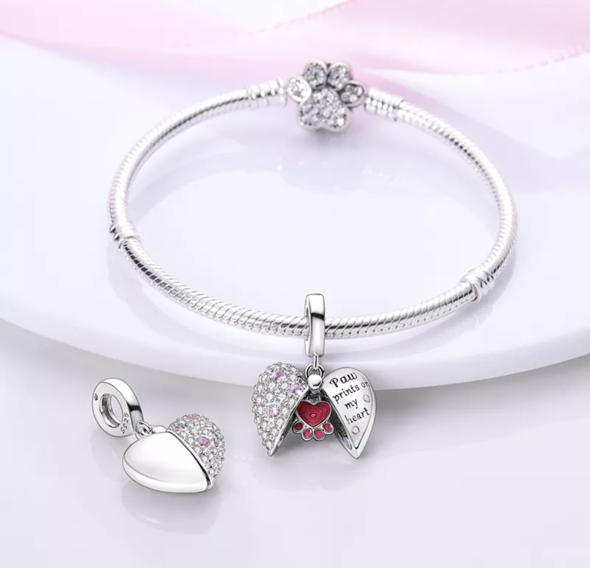 Přívěsek ve tvaru srdíčka s magnetem je jako dělaný pro všechny milovníky čtyřnohých mazlíčků. Ukrytá tlapička vašeho mazlíčka v srdci znázorňuje, jak moc vašeho mazlíčka milujete a máte ho ve svém srdci. Roztomilý přívěsek rozveselí váš náramek.
