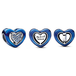 Pociťte lásku v chladných modrých tónech s Blue Spinnable Heart Charm. Korálek ve tvaru srdce je dekorován ručně nanášeným modrým smaltem, takže je ideální pro přidání šmrncu barvy do vašeho náramku. Na tomto přívěsku je na jedné ze stran točící se kotouč pokrytý modrou jiskrou na jedné straně a vyrytý vzkaz s nápisem „Moje oblíbená osoba“ na straně druhé.