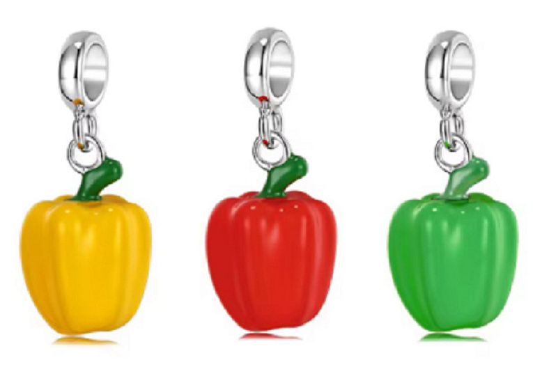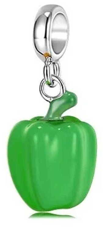 Roztomilý přívěsek znázorňující zelenou papriku. Máte rádi zeleninu? Tím pádem je tento přívěsek pro vás jako dělaný! Obdarujte sebe nebo své blízké a doplňte svůj náramek o další parádní a originální kousek.