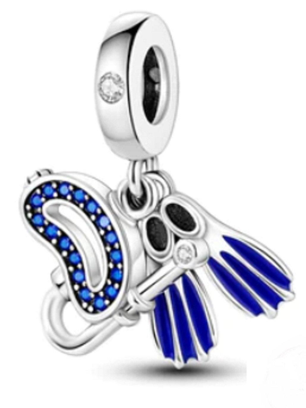 Slunce, moře a potápění - letní dovolená již klepe na dveře. Visací přívěsek se sadou na šnorchlování navrženou s hladkým modrým smaltem a třpytivými modrými a bílými drahokamy Zirkonu.
