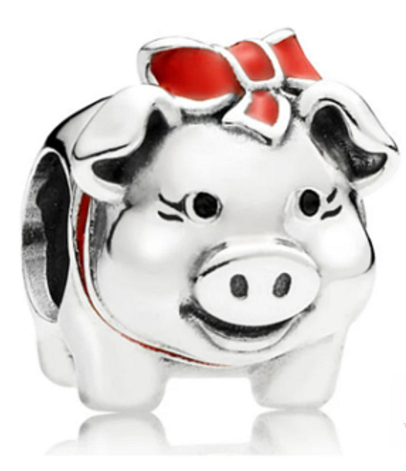 Korálek ve tvaru prasátka s červenou mašlí je nejen roztomilý, ale dokonce Vám přinese i štěstí! Výhodou tohoto jednoduchého korálku je, že může zkrášlit nejen Váš náramek, ale i Váš náhrdelník.