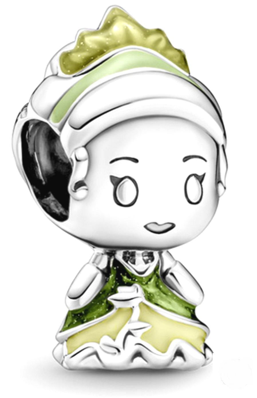 Ukažte svou vnitřní princeznu tímto kouzlem inspirovaným Disneyho příběhem Princezna Tiana a žabák. Ručně dokončené kouzlo obsahuje rytiny, které naznačují rysy obličeje, a ručně aplikovaný lesklý zelený a žlutý smalt, který dodává šatům a diadém, který nosí Tiana, jasné barevné skvrny. Kouzlo, inspirované Tianinou asertivní osobností a chutí do života, vám připomene oblíbenou postavu princezny Disney a je ikonickým doplňkem každé sbírky a do vašeho každodenního stylu vnese veselý a hravý nádech.