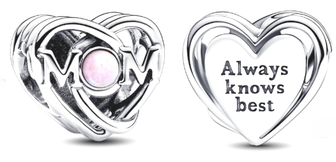 Ukažte svou lásku pomocí prolamovaného korálku, srdečného kousku. Tento korálek pro maminky zachycuje podstatu mateřství. Růžový opál dodává nádech elegance a zářivosti. S písmeny „Máma“ na jedné straně a rytinou s nápisem „Vždy ví nejlépe“ na druhé straně je tento korálek zábavnou poctou moudrosti mateřství. Nechte korálek oslavit mnohostrannou krásu mateřských pout, která jí dá vědět, jak moc pro vás její názor znamená.