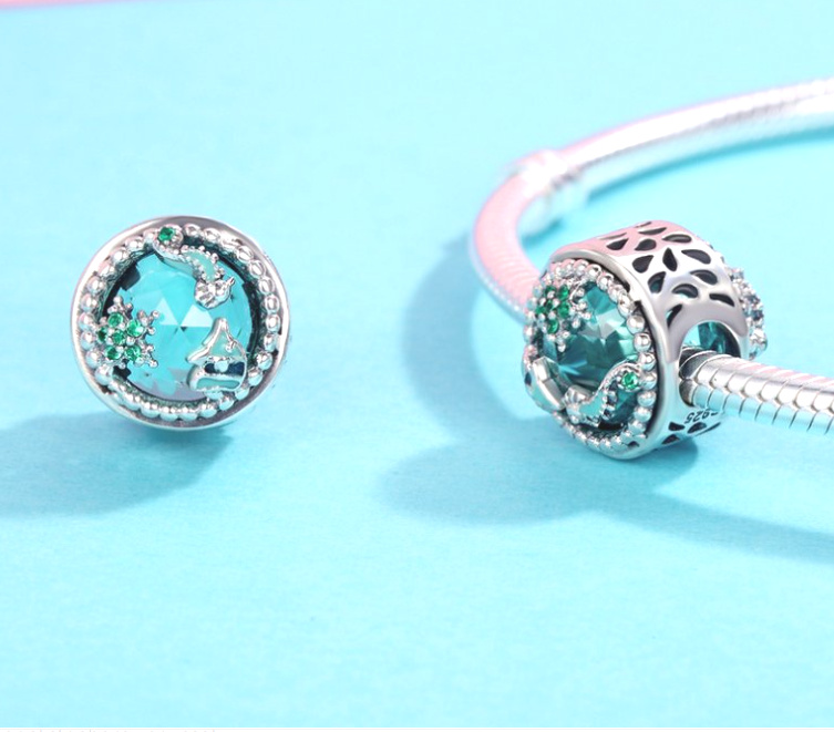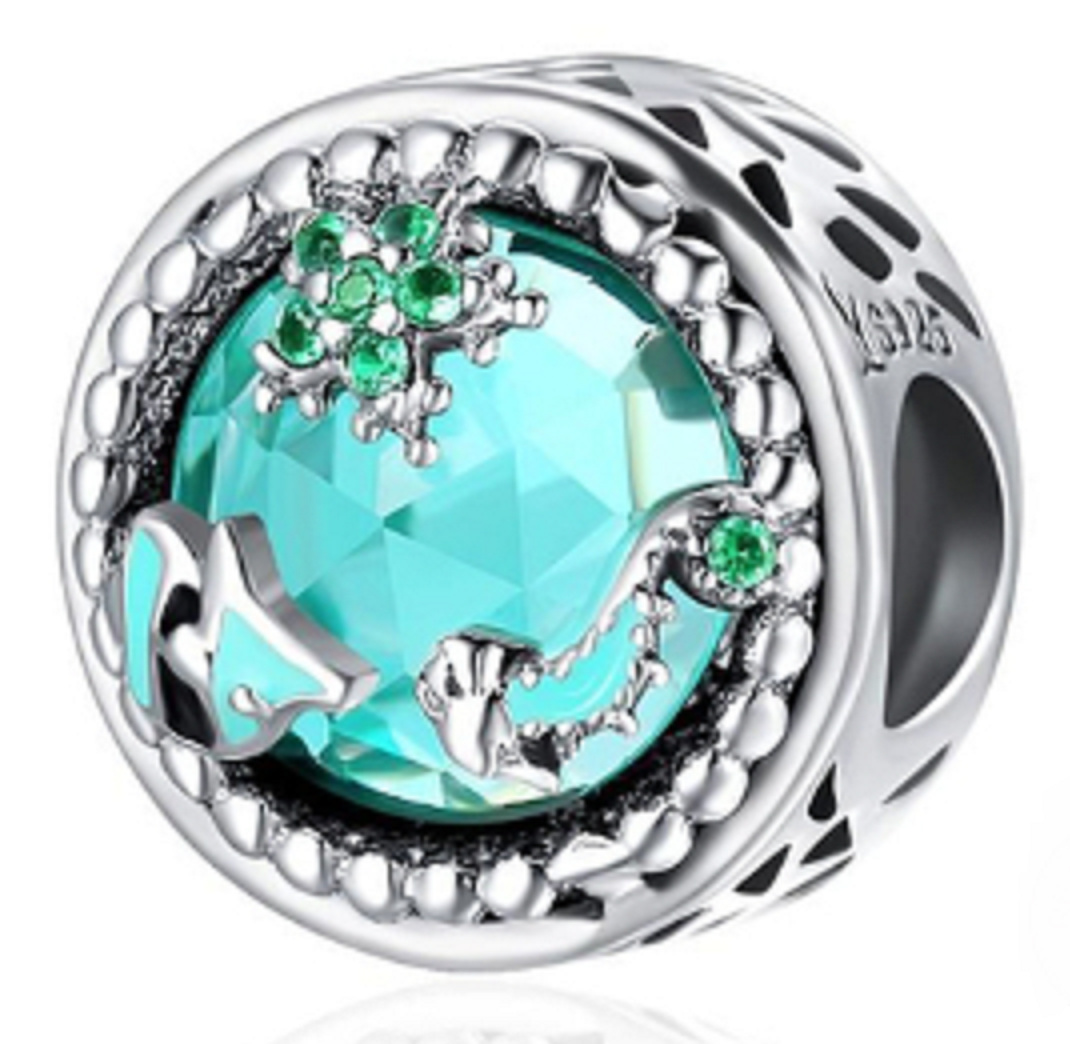 Smaragdový zbroušený krystal, usazený v lůžku, s motivem oceánu. Korálek Ocean Vám připomene příjemně strávené dny vaší dovolené.
