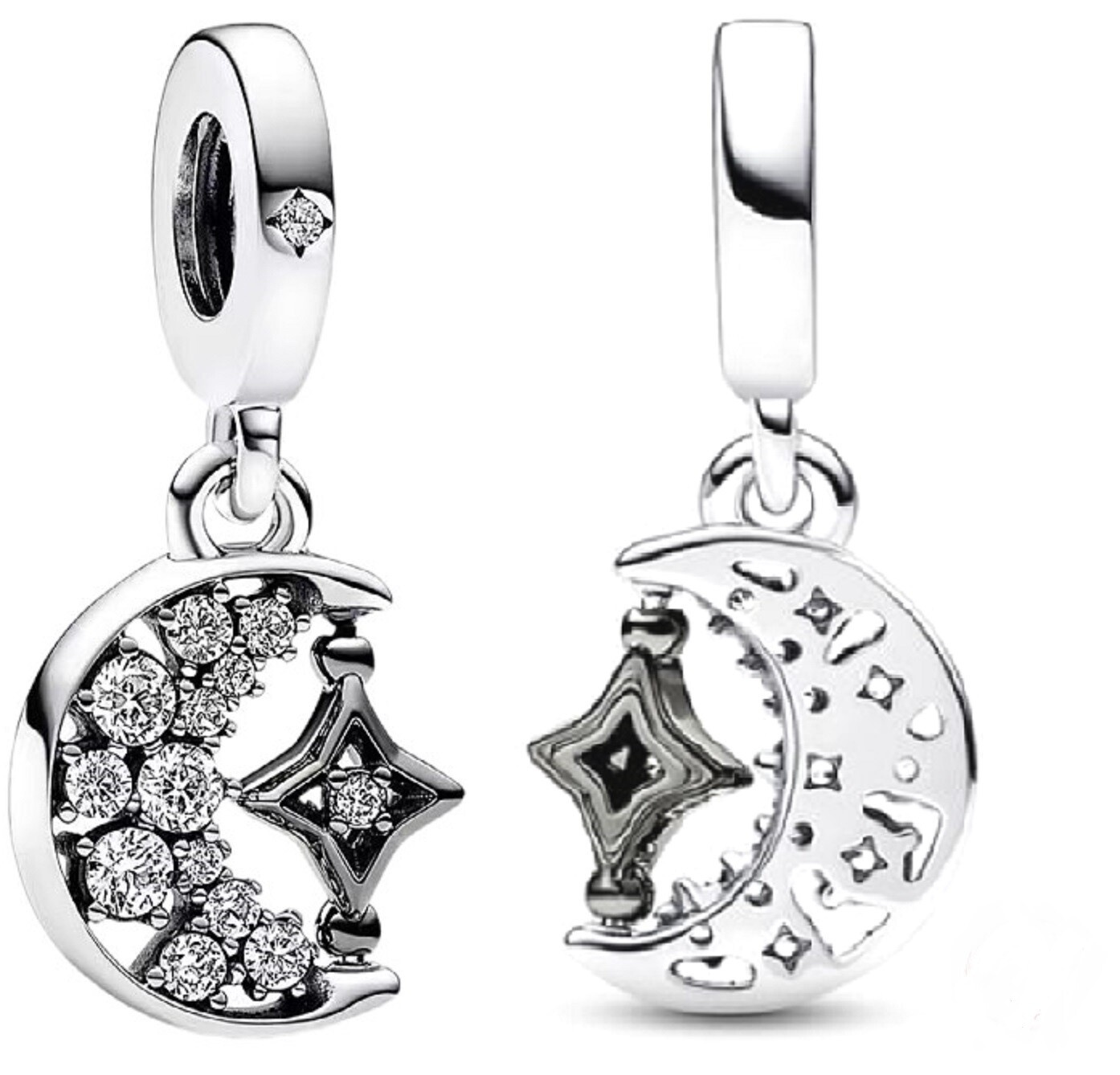 Charm Půlměsíc a otáčecí hvězda, přívěsek na náramek vesmír