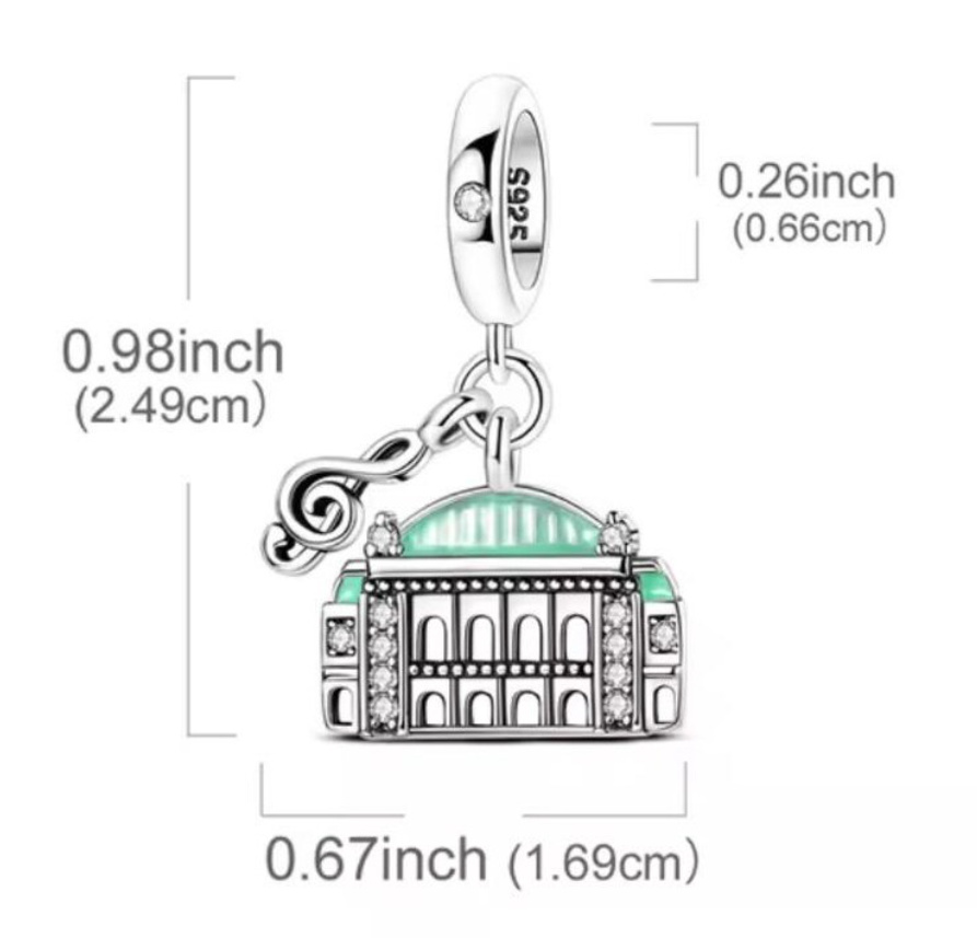 Elegantní přívěsek inspirovaný ikonickou budovou Vídeňská státní opera je poctou hudbě, umění a nadčasové eleganci Vídně. Precizně zpracovaná fasáda s jemnými kamínky doplněná nápisem „Vienna“ vytváří šperk s výrazným kulturním a cestovatelským příběhem.