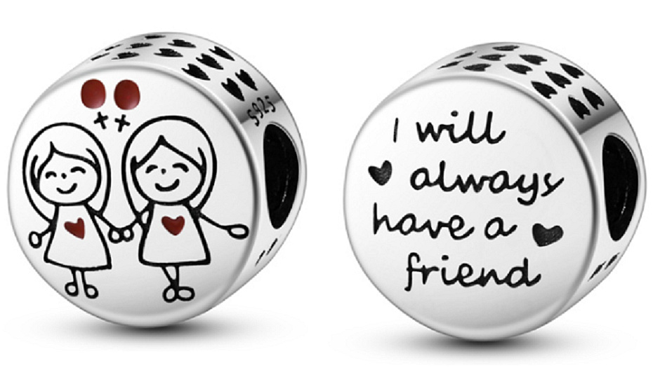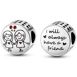 Přívěsek, zdobený srdíčky a dvěma sestra držící se za ruce, najdete na něm nápis "I will always have a friend" (Vždy budu mít kamarádku". Roztomilý přívěsek rozveselí váš náramek. Ať už si chcete připomenout zvláštní okamžik nebo jednoduše dodat svému náramku jiskru, toto kouzlo určitě udělá dojem. Přidejte si ji tedy do své sbírky ještě dnes a užívejte si její nadčasovou krásu v nadcházejících letech!