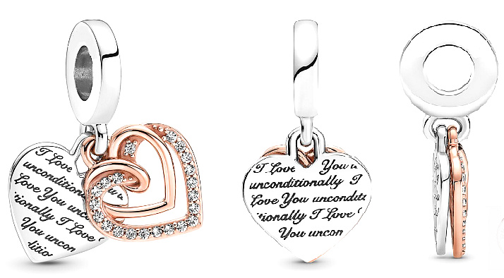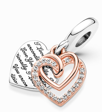 Vyjádřete svou lásku třpytivým šperkem. Visací přívěsek Bezpodmínečná láska jsou dvě propletená růžově pozlacená srdce s řadou kubických zirkonií a srdce s opakujícím se nápisem "I love you unconditionally" - miluji Tě bezpodmínečně. S tímto přívěskem budete mít svou lásku neustále na blízku.