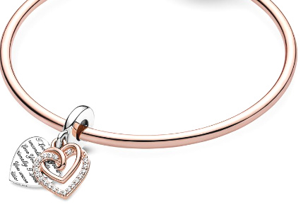 Je ručně dokončen a ozdoben čirými kameny kubické zirkonie se dvěma srdíčky, která se spojují a představují věčnou lásku.