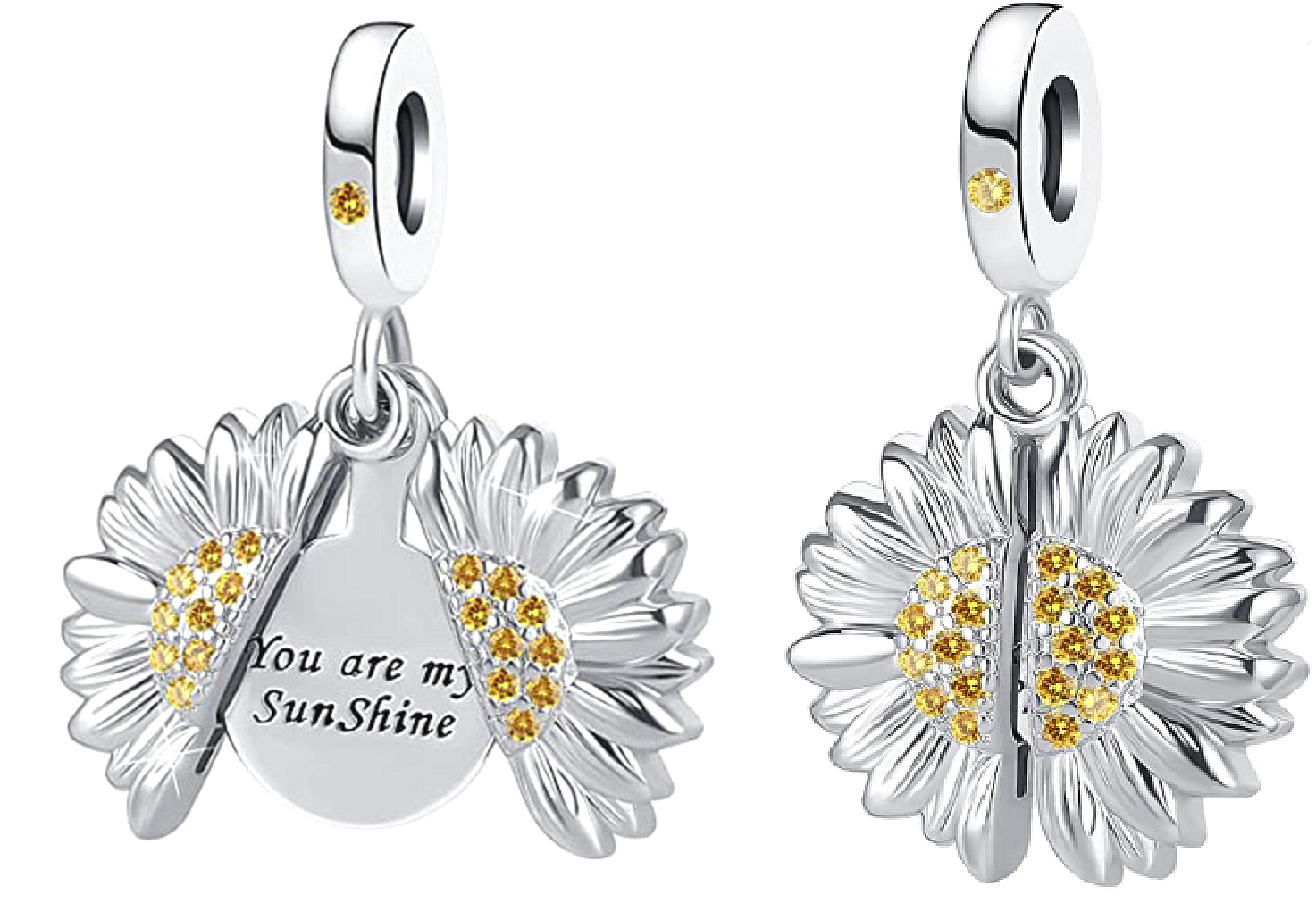 Charm Rozkvetlá slunečnice s nápisem - Jsi moje sluníčko, otevíratelný přívěsek na náramek láska