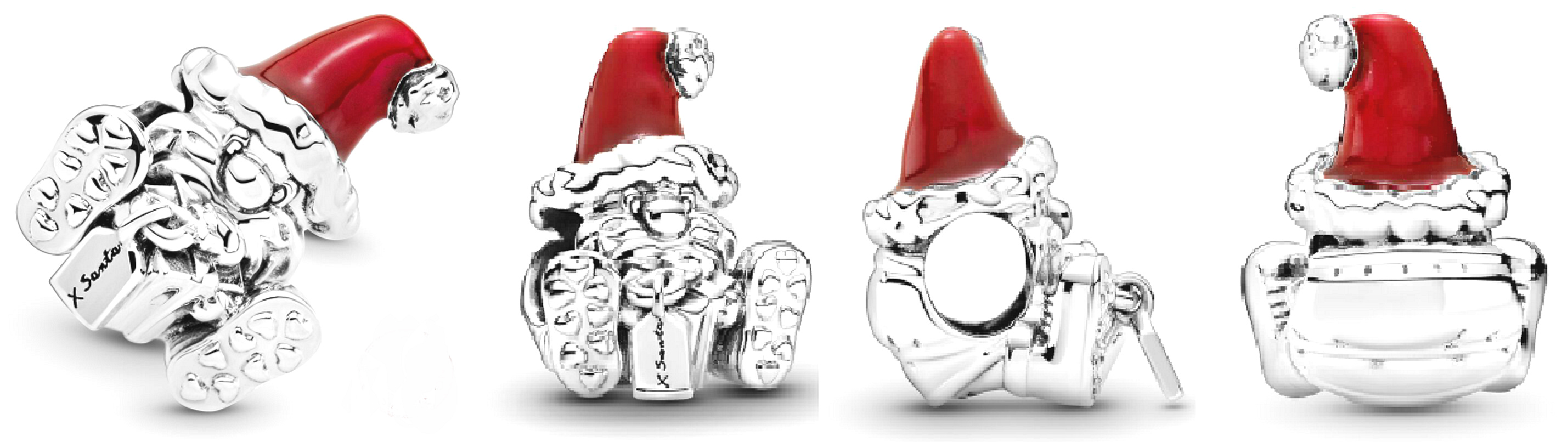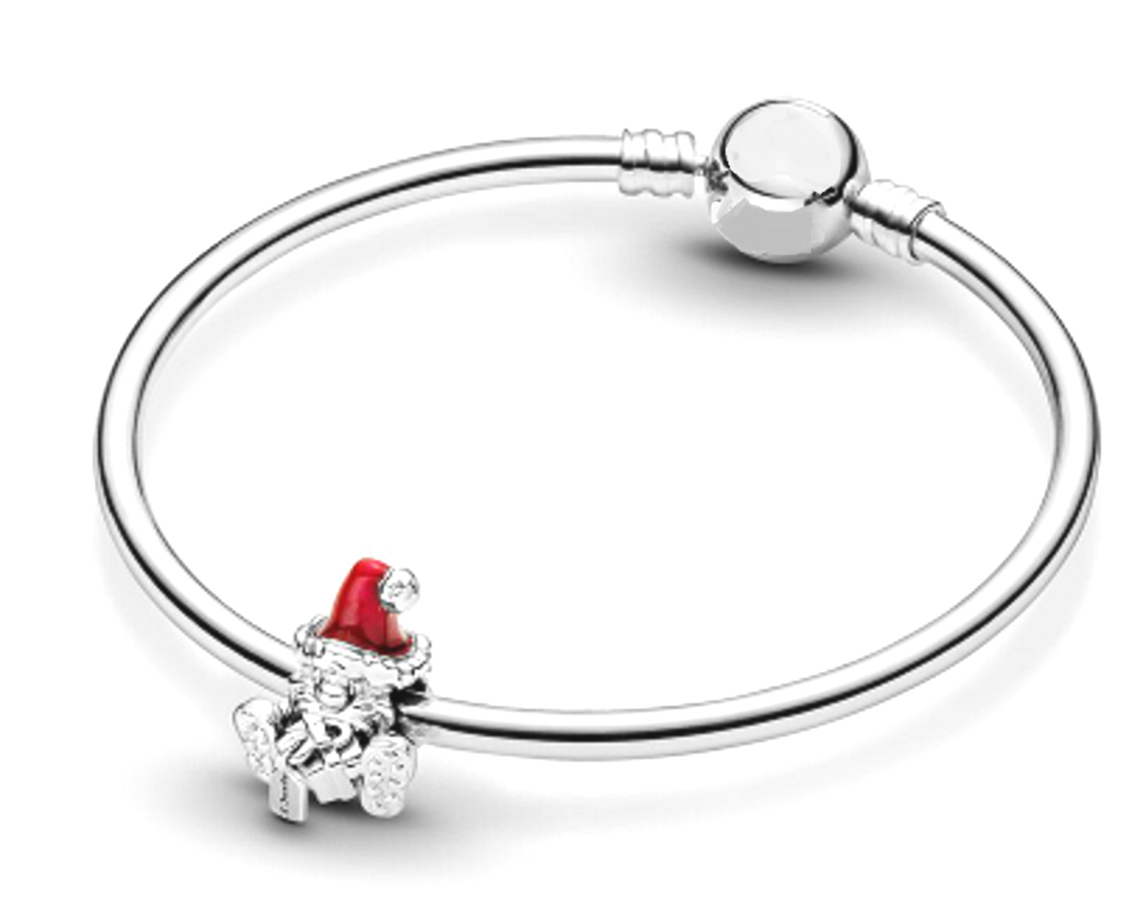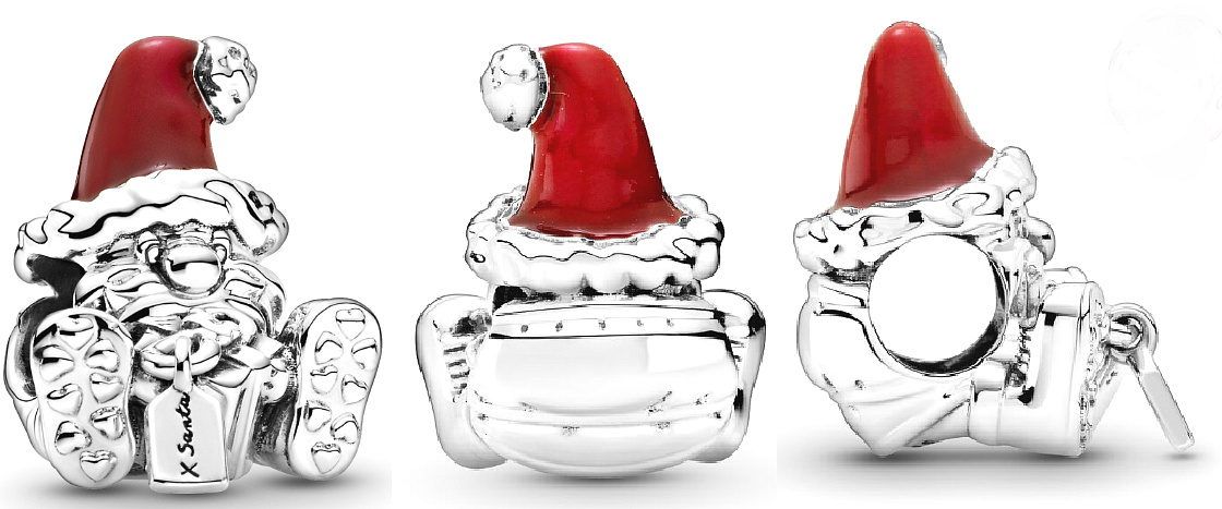 červeným smaltem. V rukou drží dárek s přívěskem "X Santa" (Polibky od Santy). Dejte toto kouzlo milovanému člověku a udělejte jeho