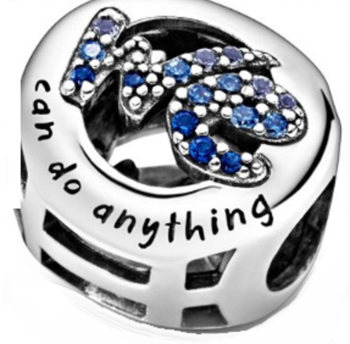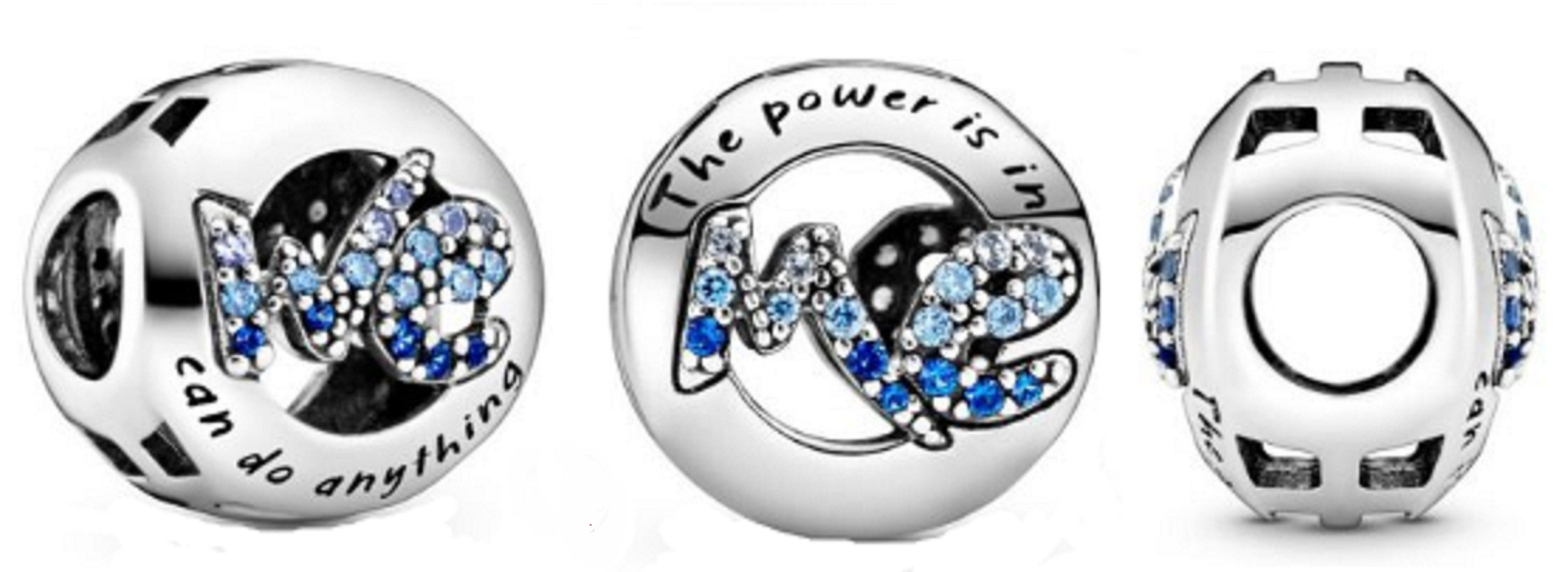 Korálek obsahuje třpytivé modré kameny s názvy „we (my) a me (vy)“ . Na každé straně tohoto hladkého prolamovaného kouzla je vyryta kompletní zpráva a v překladu zní: „můžeme udělat cokoliv“ na jedné straně a „síla je ve mně“ na straně druhé.
