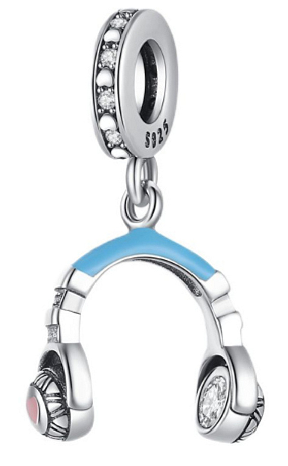 Charm Sluchátka modrá, přívěsek na náramek hudba