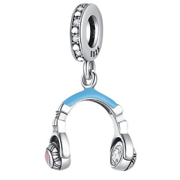 Visací přívěsek s hudebními sluchátky dekorovány hladkým modrým a růžovým smaltem a bílými třpytivými drahokamy Zirkonu. S každým přívěskem vyprávěj svůj příběh a vytvoř si náramek, který odráží, kdo jsi. Tvůj styl. Tvůj náramek. Tvůj příběh.