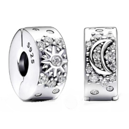 Dodejte svému vzhledu sofistikovaný třpyt pomocí klipsu. Tento přívěsek se sponou má na jedné straně vyvýšený srpek měsíce a na druhé straně vystouplé zářící slunce. Třpytivé kameny jsou zasazeny uvnitř a obklopují měsíc i slunce. Silikon uvnitř přívěsku jej drží na místě. Toto kouzlo, které šíří úžasnou krásu nebes nahoře, tvoří elegantní a jemný doplněk vašeho každodenního stylu.