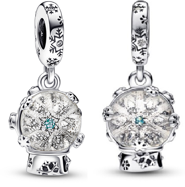 Zachyťte kousek kouzla svátečních chvil visacím přívěskem Sněhová koule se sněhovými vločkami. Přívěsek tvoří motiv sněhové vločky obklopený třpytkami ve skleněné kouli, což vyvolává osobitý kouzelný pocit. Propracovaný kousek vyžaduje vysoký podíl ruční práce, jelikož obsahuje mnoho detailů, včetně drážkovaných a vyvýšených sněhových vloček na základně, rozptýlených ve sněhové kouli a na navlékacím očku. Po otočení přívěsku si můžete přečíst nápis vygravírovaný na základně „One in a Million“ (Jedna z milionu). Speciální dárek pro milovanou osobu nebo kouzelný doplněk vašeho stylingu šperků.