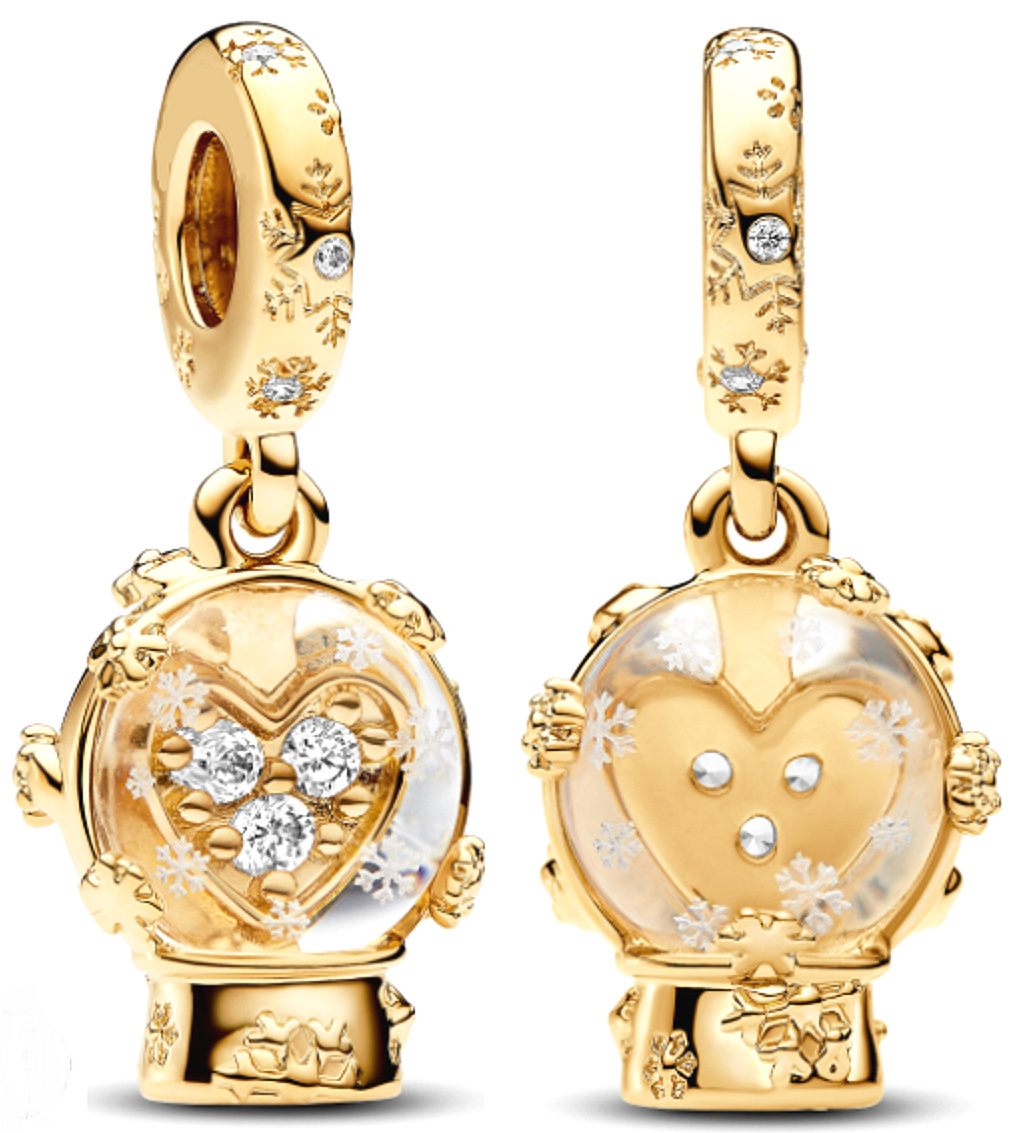 Popis Charm Sněžítko se srdcem a sněhovými vločkami, přívěsek na náramek vánoce