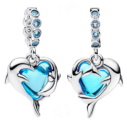 Jemný a zároveň výrazný přívěsek ve tvaru srdce, které chrání dva Delfíni, je zdoben modrým krystalem připomínajícím hloubku oceánu. Horní část přívěsku doplňují třpytivé modré kamínky, které šperku dodávají lehkost, eleganci a svěží energii.