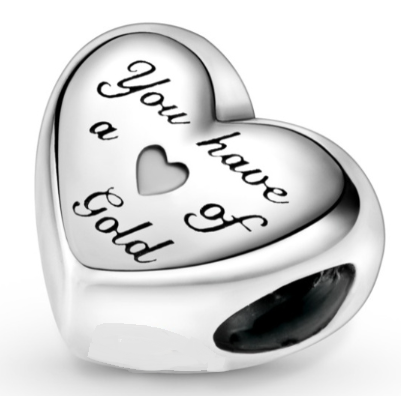 Krásný korálek ve tvaru srdce, v jehož středu je srdce. Ze zadní strany přívěsku je rytina "You have a heart of gold" - Máš srdce ze zlata. S tímto korálkem určitě nešlápnete vedle a Vaše milovaná si ráda rozšíří svou sbírku korálků.