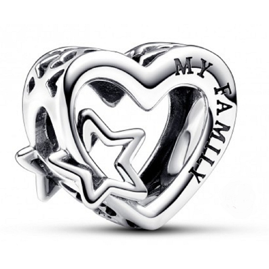 Noste své srdce na ruce s prolamovaným rodinným kouzlem. Motiv srdce a Hvězdy zdobí tento korálek jejich symbolikou je význam rodiny. Dárek pro sebe nebo někoho, koho máte rádi, toto kouzlo obsahuje vyříznuté Hvězdy po stranách přívěsku a větší vyříznutou hvězdu na každé straně srdce. Dva oblíbené motivy se spojí a vytvoří kouzlo, které září (téměř) tak jasně jako ty, které milujete nejvíce.