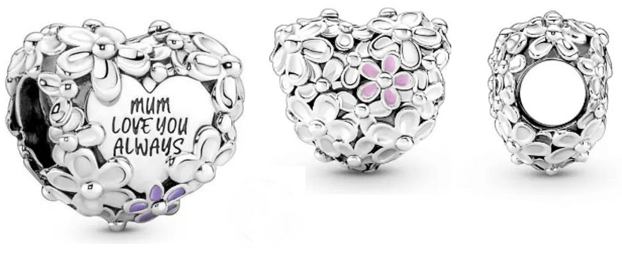 Charm Srdce se sedmikráskami pro maminku, korálek na náramek rodina