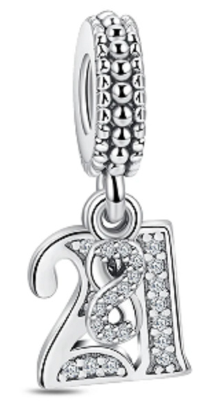 Charm Sterlingové stříbro 925 21 let lásky, 2v1 přívěsek na náramek výročí