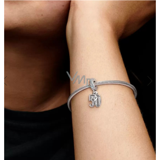 Charm Sterlingové stříbro 925 50 let lásky, 2v1 přívěsek na náramek výročí
