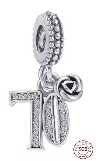 Charm Sterlingové stříbro 925 70 výročí, přívěsek růže na náramek