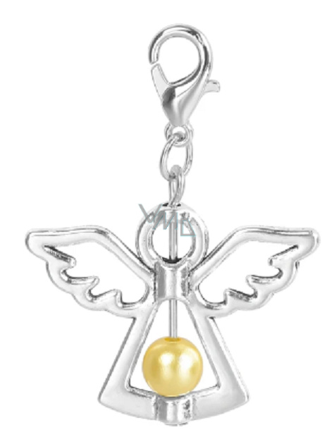 Anděl strážný přívěsek s žlutou perličkou 29 x 37 mm