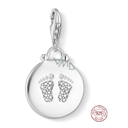 Charm Sterlingové stříbro 925 Baby - Disk dětská stopa, humří spona přívěsek na náramek narození