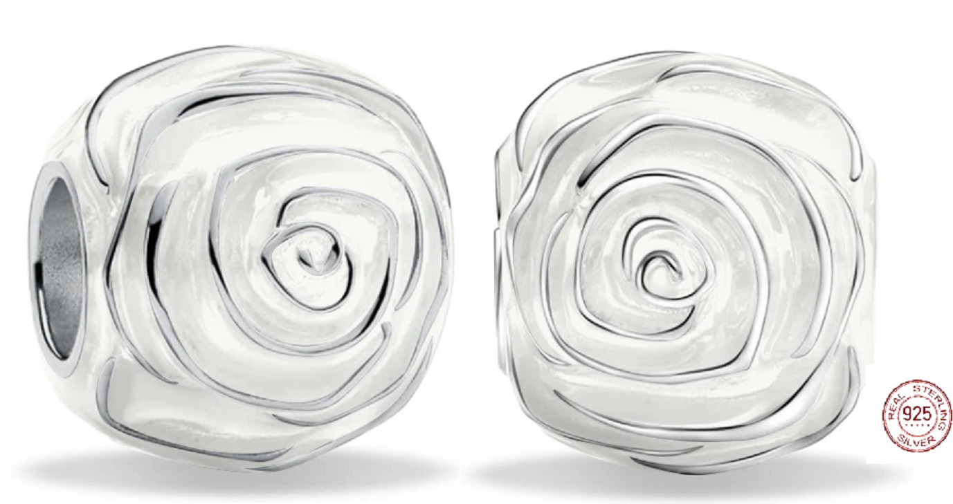 Charm Sterlingové stříbro 925 Bílá růže v květu, korálek na náramek květina
