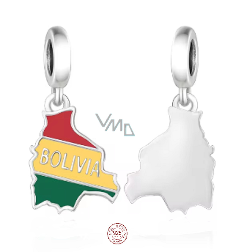 Charm Sterlingové stříbro 925 Bolívie vlajka - houpající se mapa, přívěsek na náramek cestování