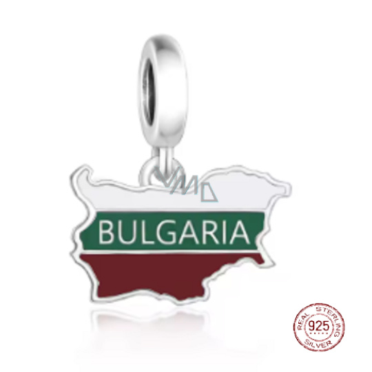 Charm Sterlingové stříbro 925 Bulharsko vlajka - houpající se mapa, přívěsek na náramek cestování