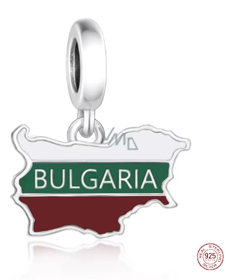 Charm Sterlingové stříbro 925 Bulharsko vlajka - houpající se mapa, přívěsek na náramek cestování