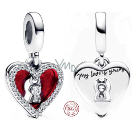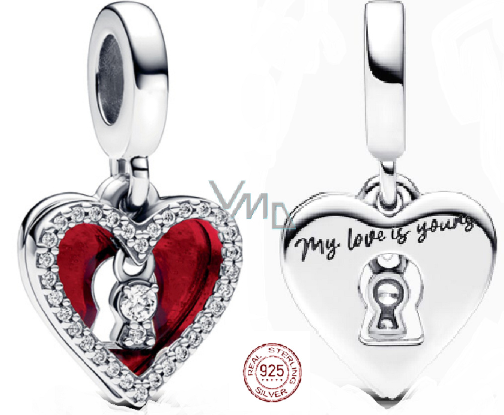 Charm Sterlingové stříbro 925 Červené srdce s klíčovou dírkou 2v1, přívěsek na náramek láska